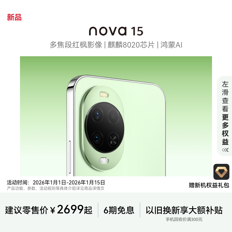 【国家补贴】华为 nova 15 麒麟8020芯片 多焦段红枫影像 北斗卫星消息 华为直面屏鸿蒙手机华为官方旗舰店