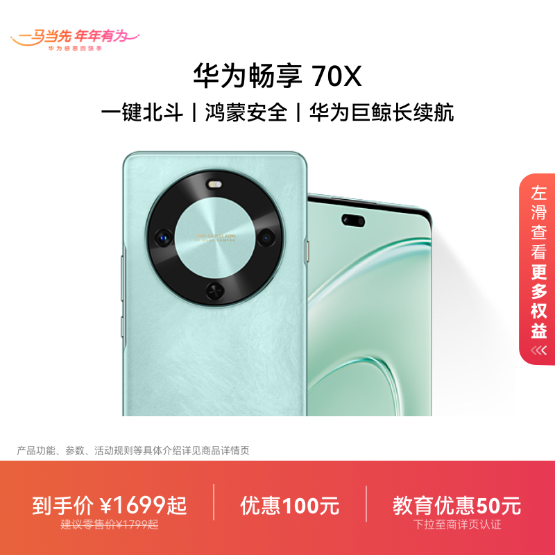【优惠100元 可叠国家补贴】华为畅享 70X 手机巨鲸长续航双曲护眼屏五星超耐摔华为官方旗舰店鸿蒙学生手机
