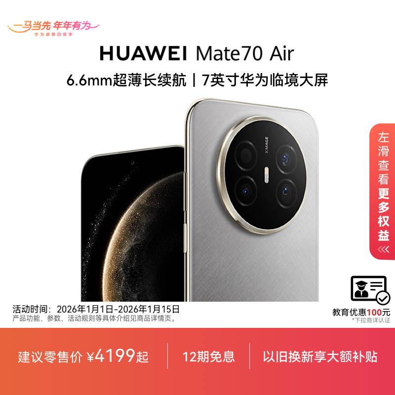【新品可叠国家补贴】HUAWEI Mate70 Air 6.6mm超薄长续航7英寸华为临境大屏红枫原色影像华为官方旗舰店手机