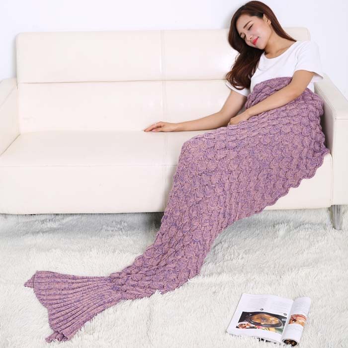 保暖针织美人鱼沙发毯子 鱼鳞美人鱼尾巴毛毯儿童毛毯空调毯礼物