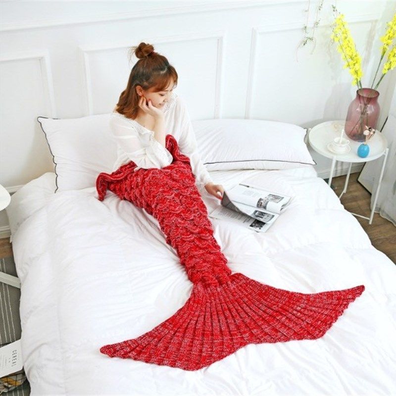 美人鱼尾毛毯鱼尾巴毯子美人鱼毯秋冬沙发针织休闲毯人鱼毯盖毯午