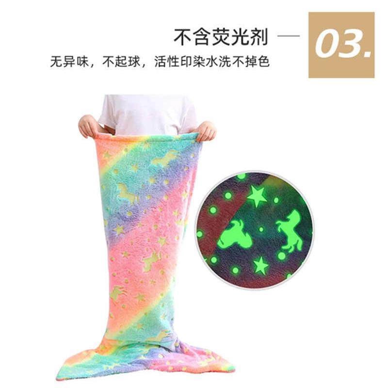 梦幻夜光美人鱼毛毯儿童午睡空调被法兰绒鱼尾巴毯子沙发盖毯睡袋