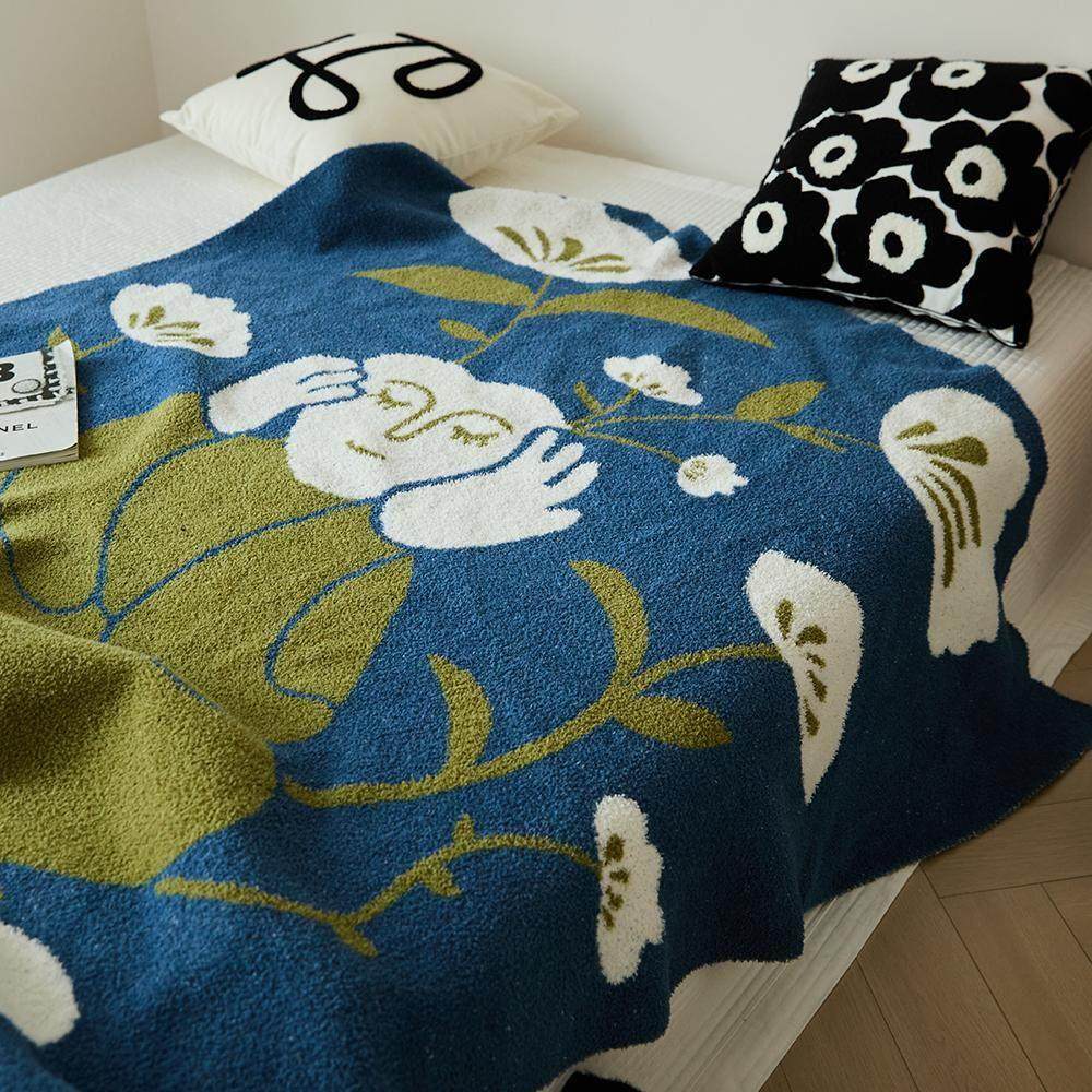 夏季家用透气新款手工针织午睡毛毯柔软舒适美人鱼盖毯毯子沙发毯
