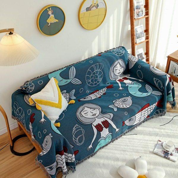 网红ins风双面沙发巾披毯盖布装饰棉毯子四季通用美人鱼沙发套罩