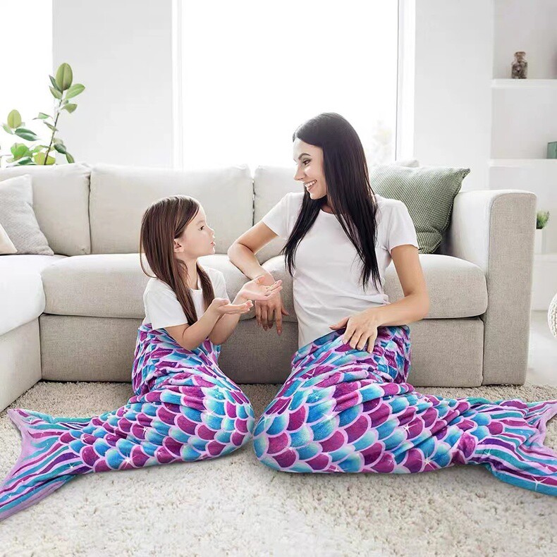 美人鱼尾巴儿童睡袋成人沙发盖毯宝宝防踢被亲子款美人鱼尾巴毛毯