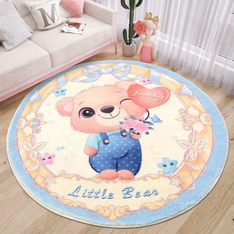可爱美人鱼卡通圆形地毯儿童转椅垫毛绒客厅沙发地垫床边毯阅读区