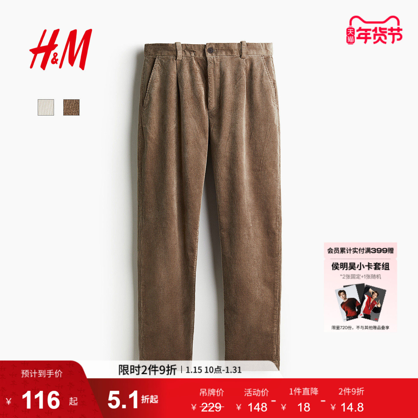 HM男装休闲裤冬季冬新款标准版型舒适中腰灯芯绒休闲长裤1230964