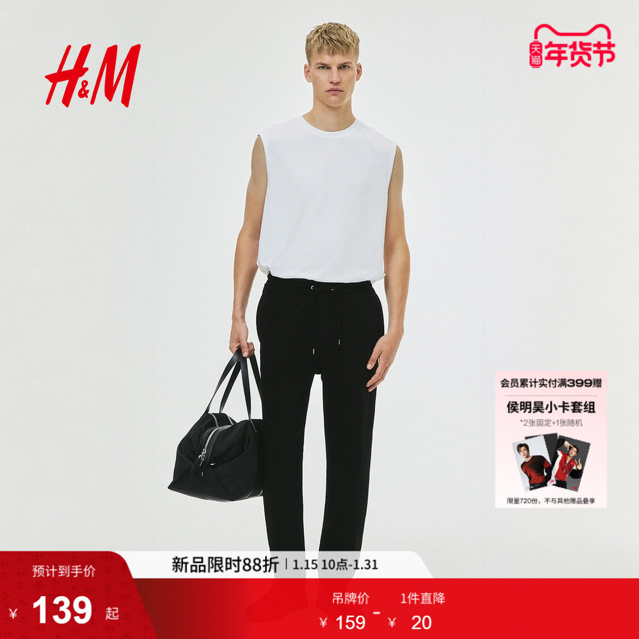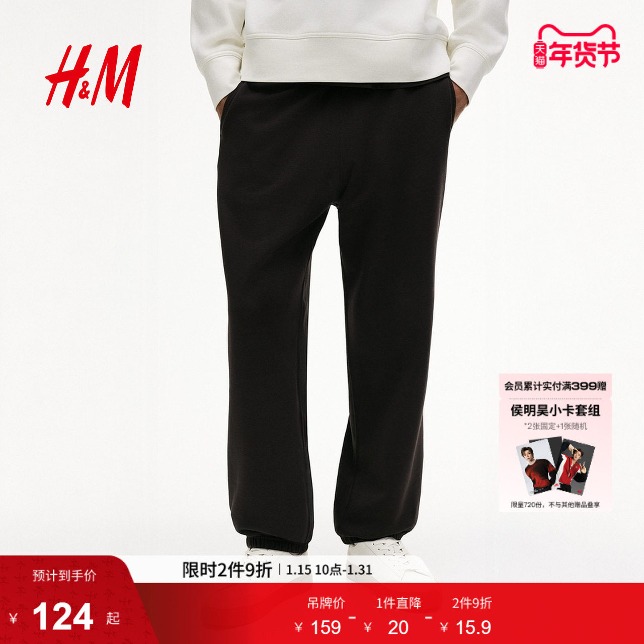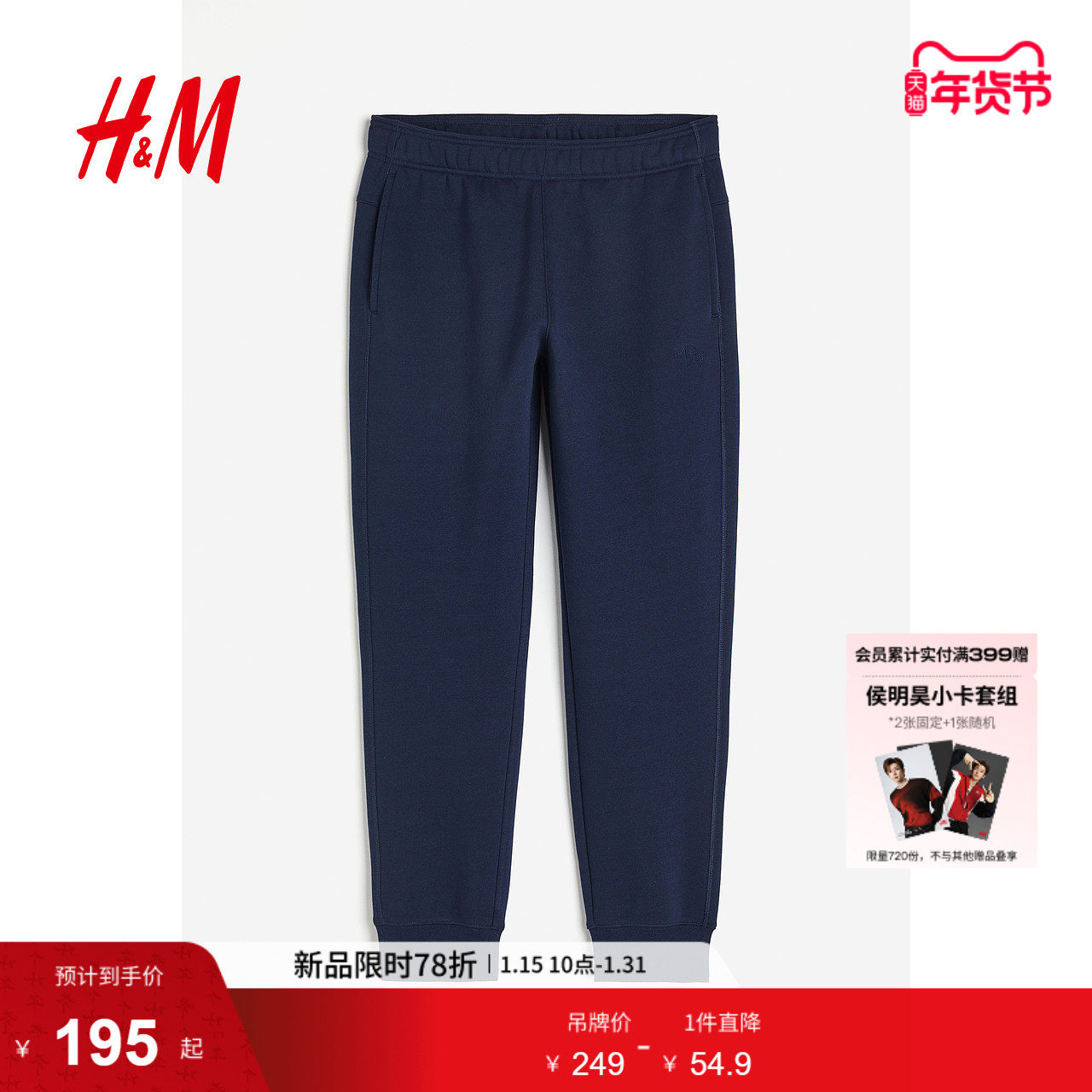 HM男装运动长裤冬季跑步舒适锥形修身抽绳慢跑裤1199781