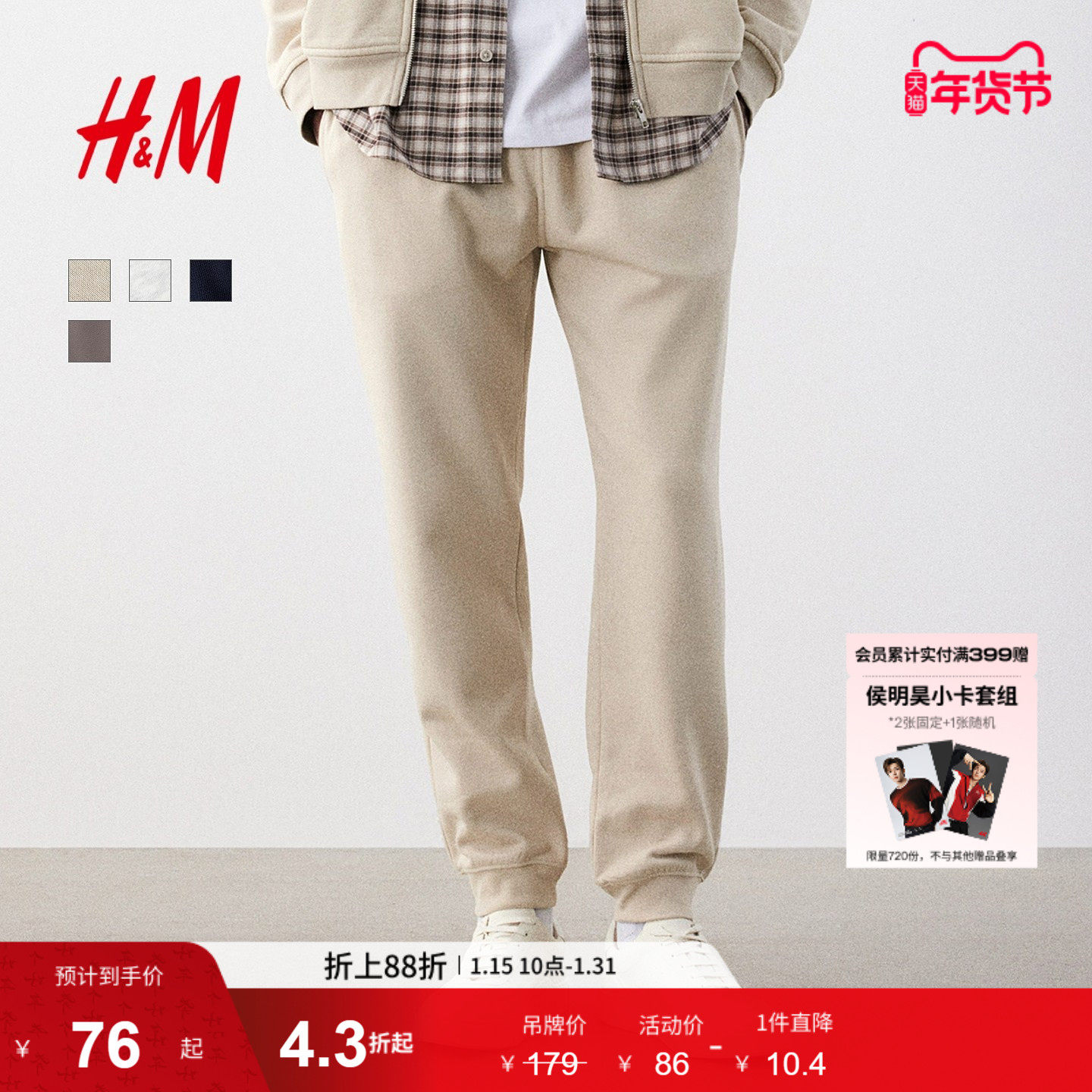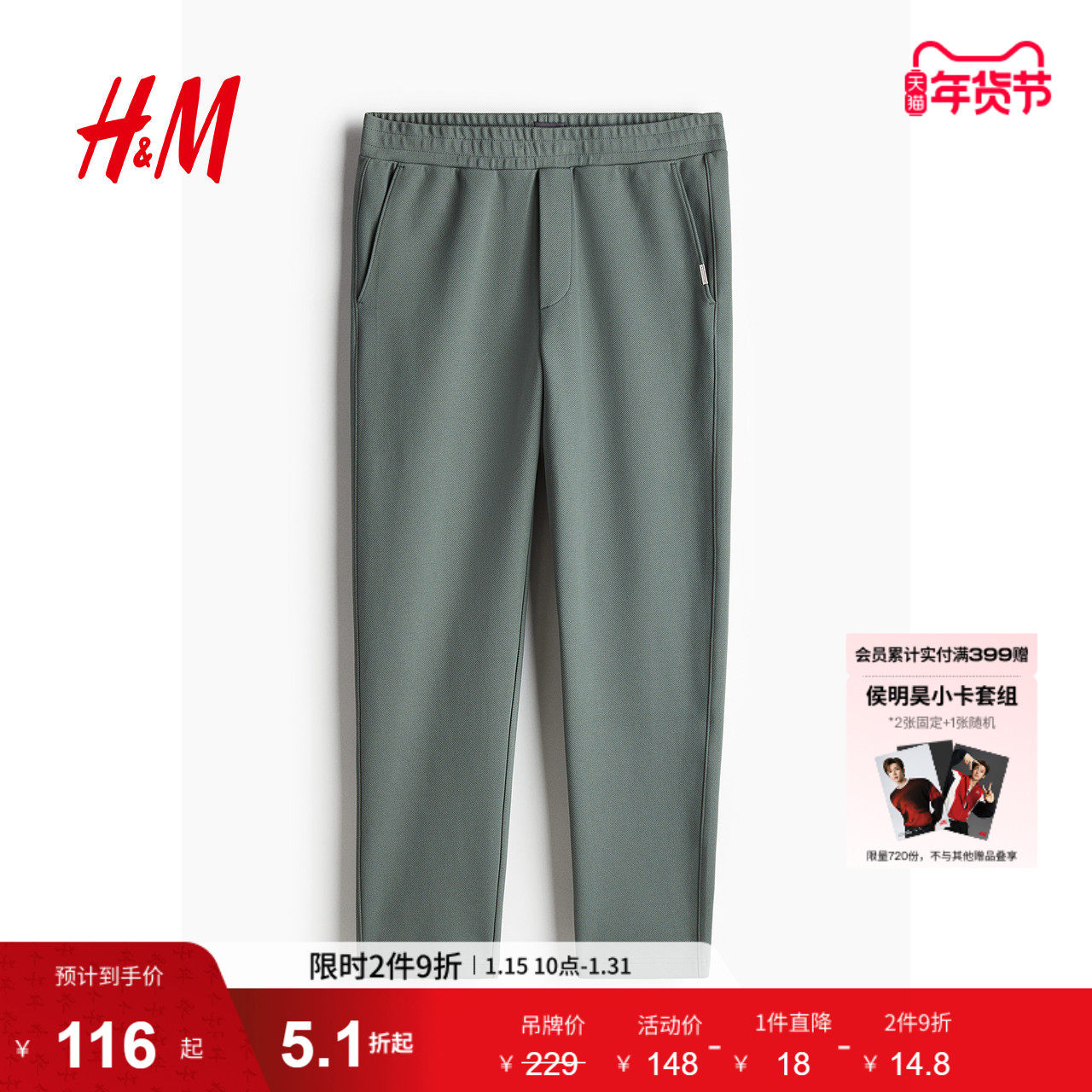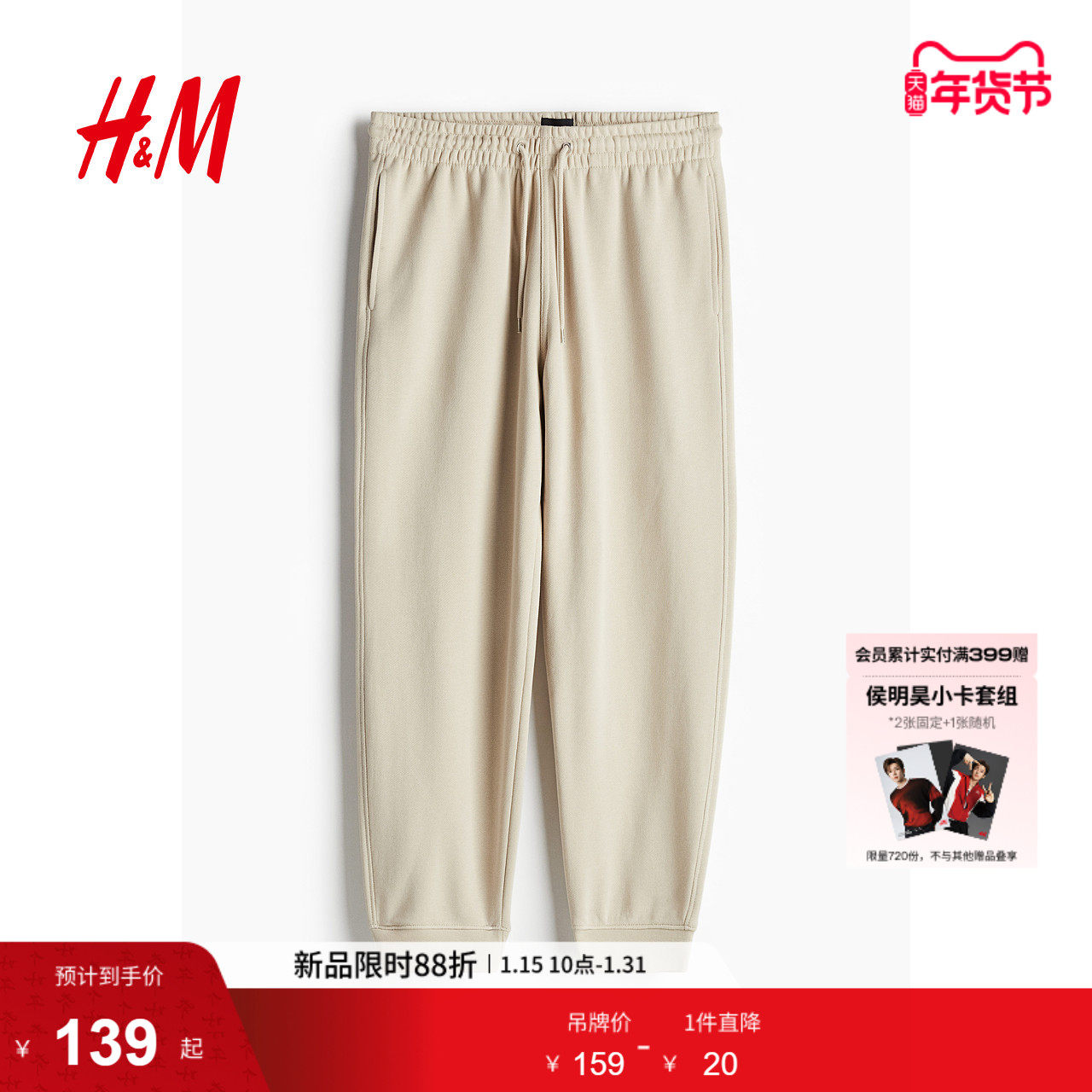HM男装休闲裤柔软舒适宽松简约运动裤抽绳慢跑束脚长裤1012056