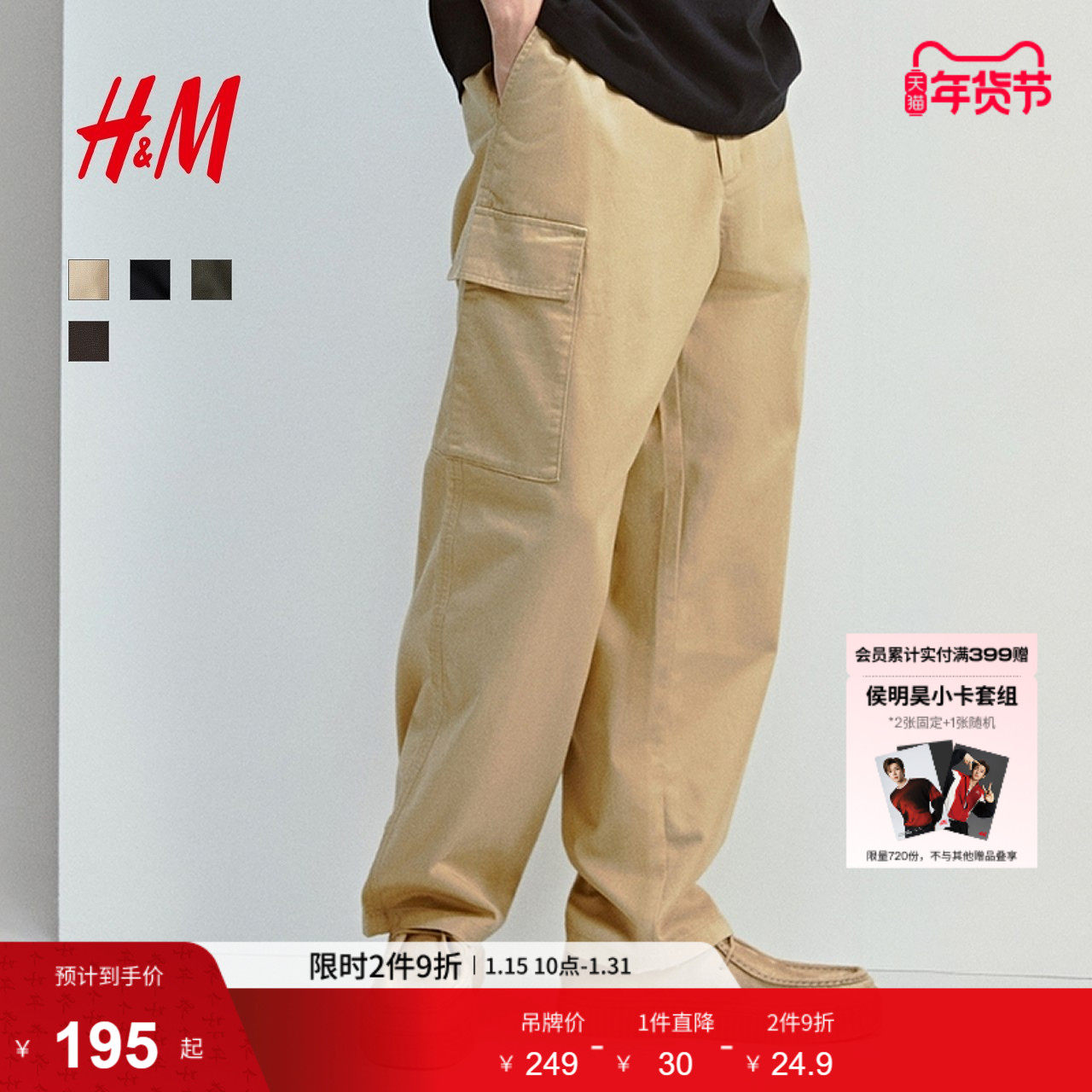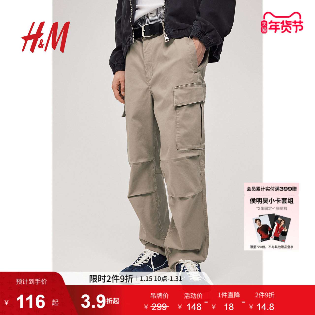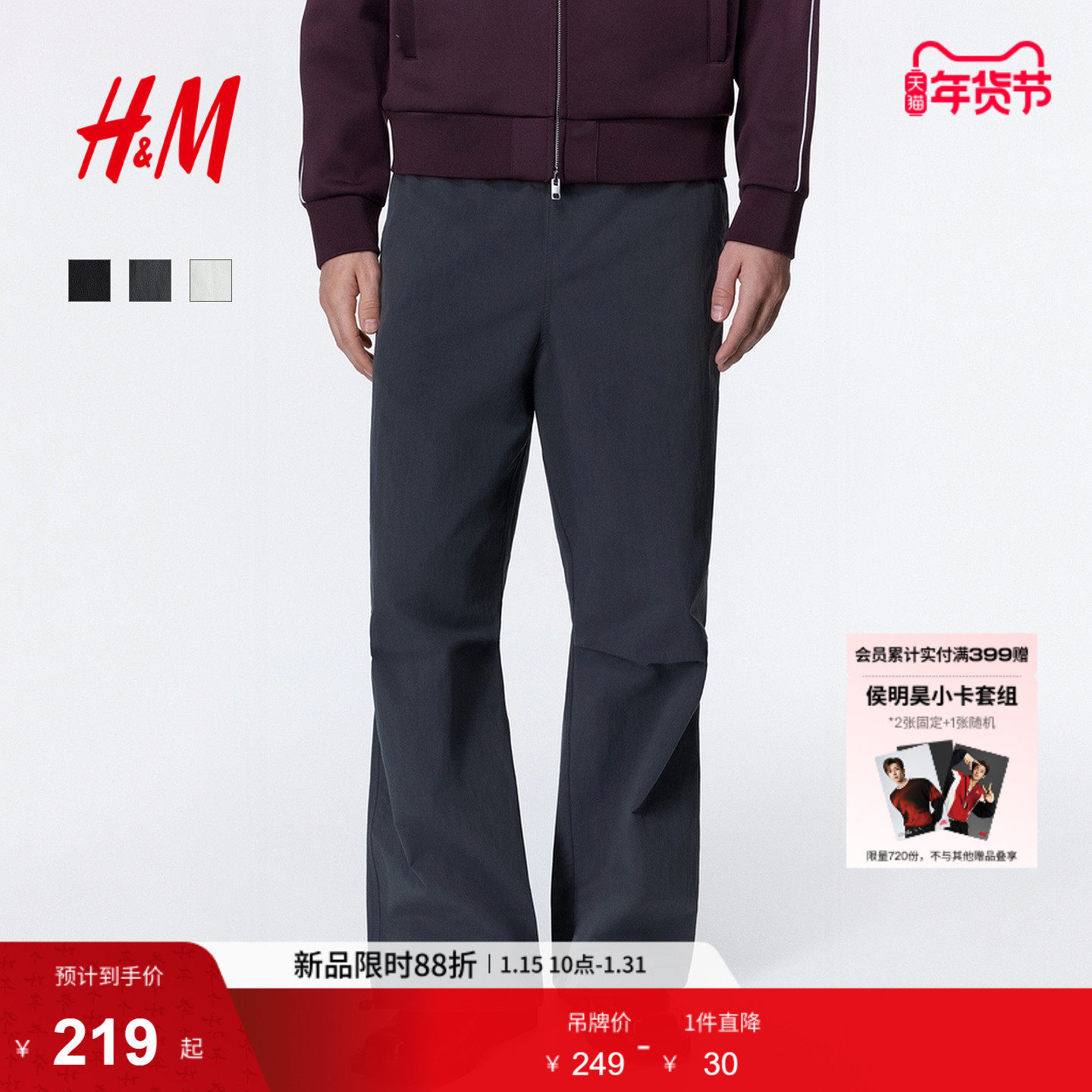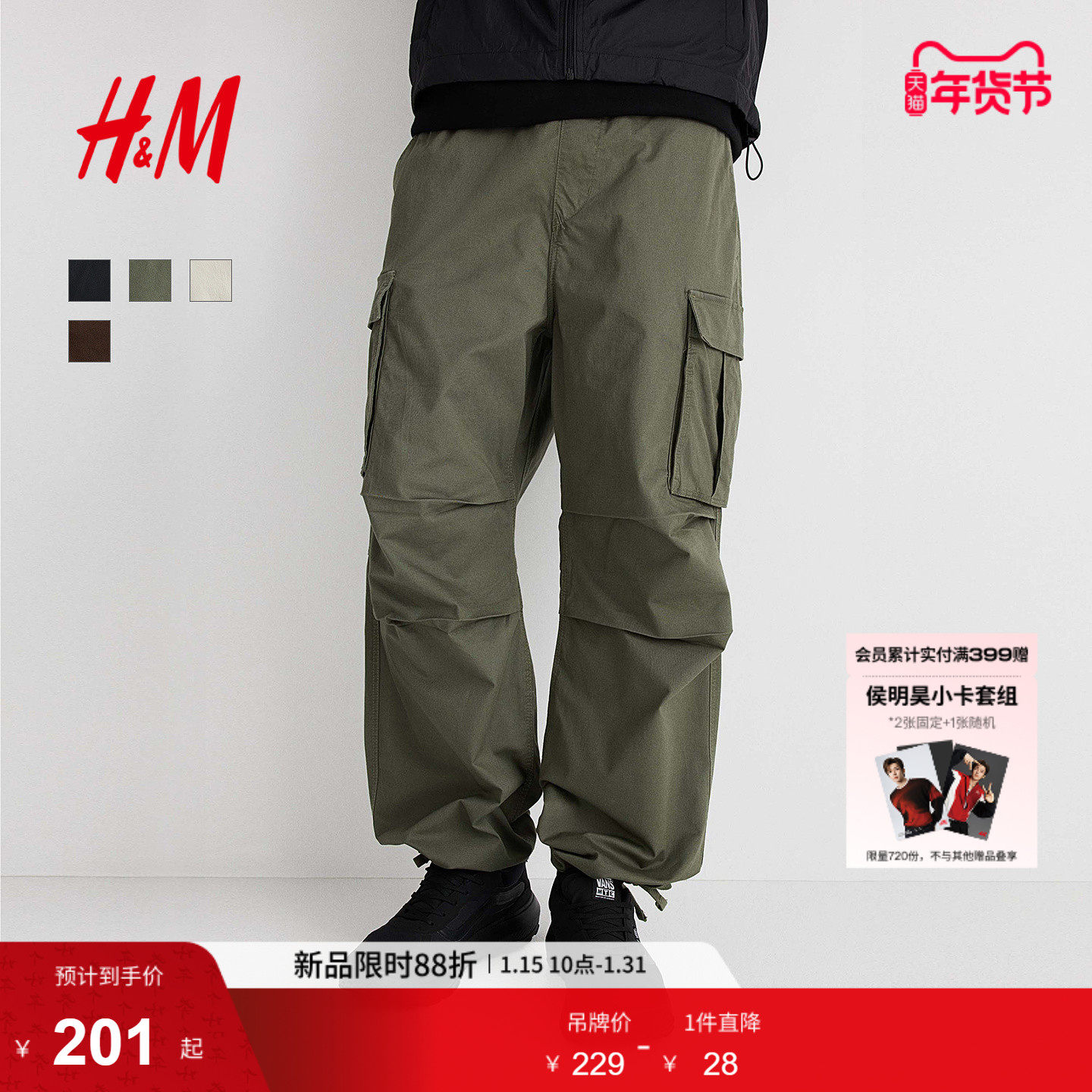 HM男装休闲裤2026春季新款宽松直筒户外中腰长裤降落伞裤1325899