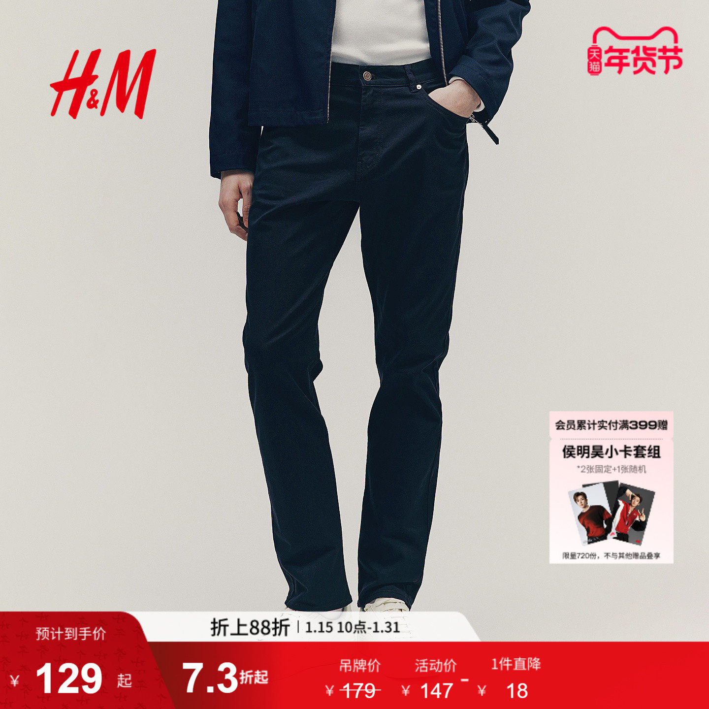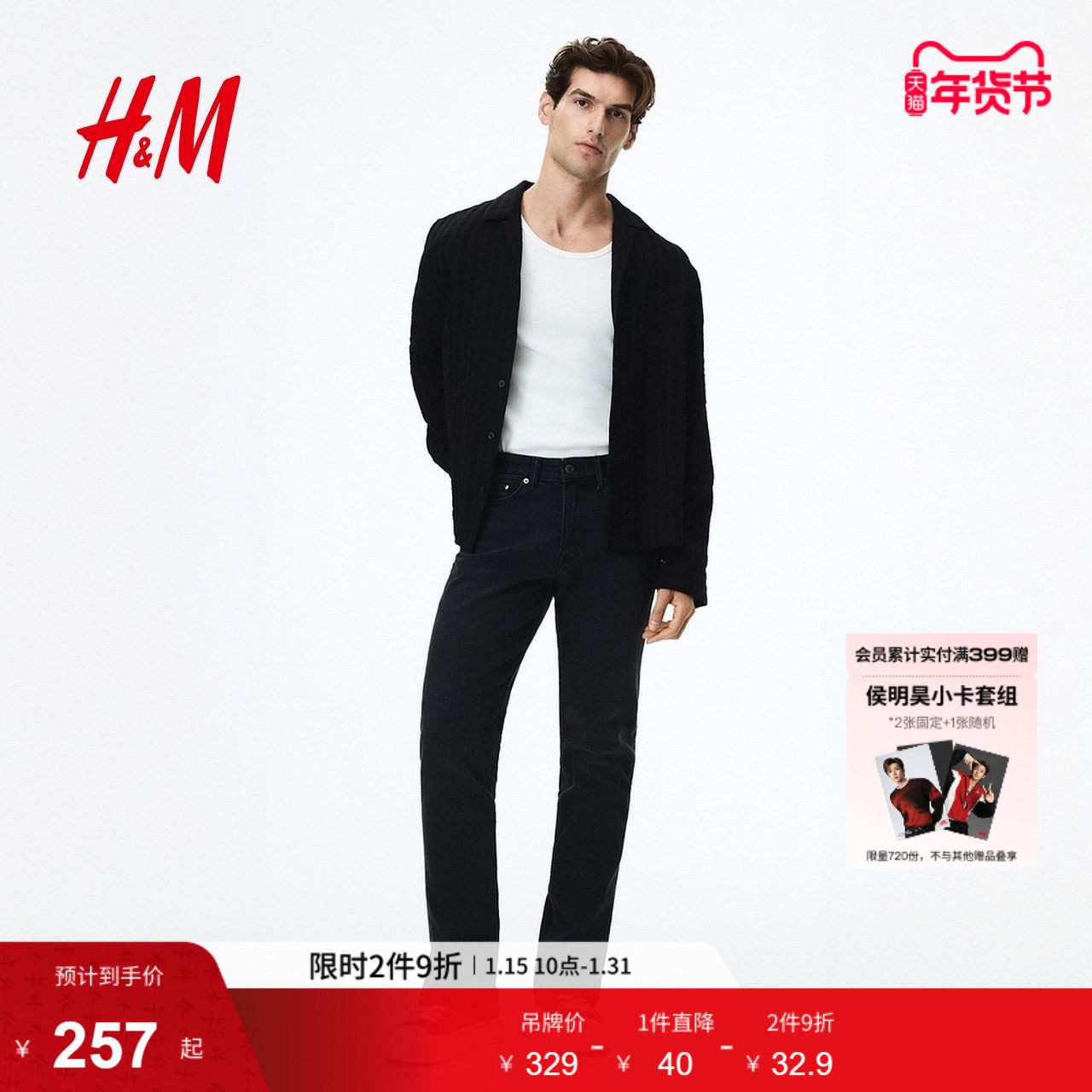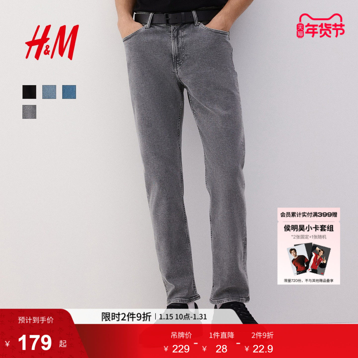 HM男装牛仔裤2026春季新款丹宁直筒休闲通勤长裤牛仔裤1316883