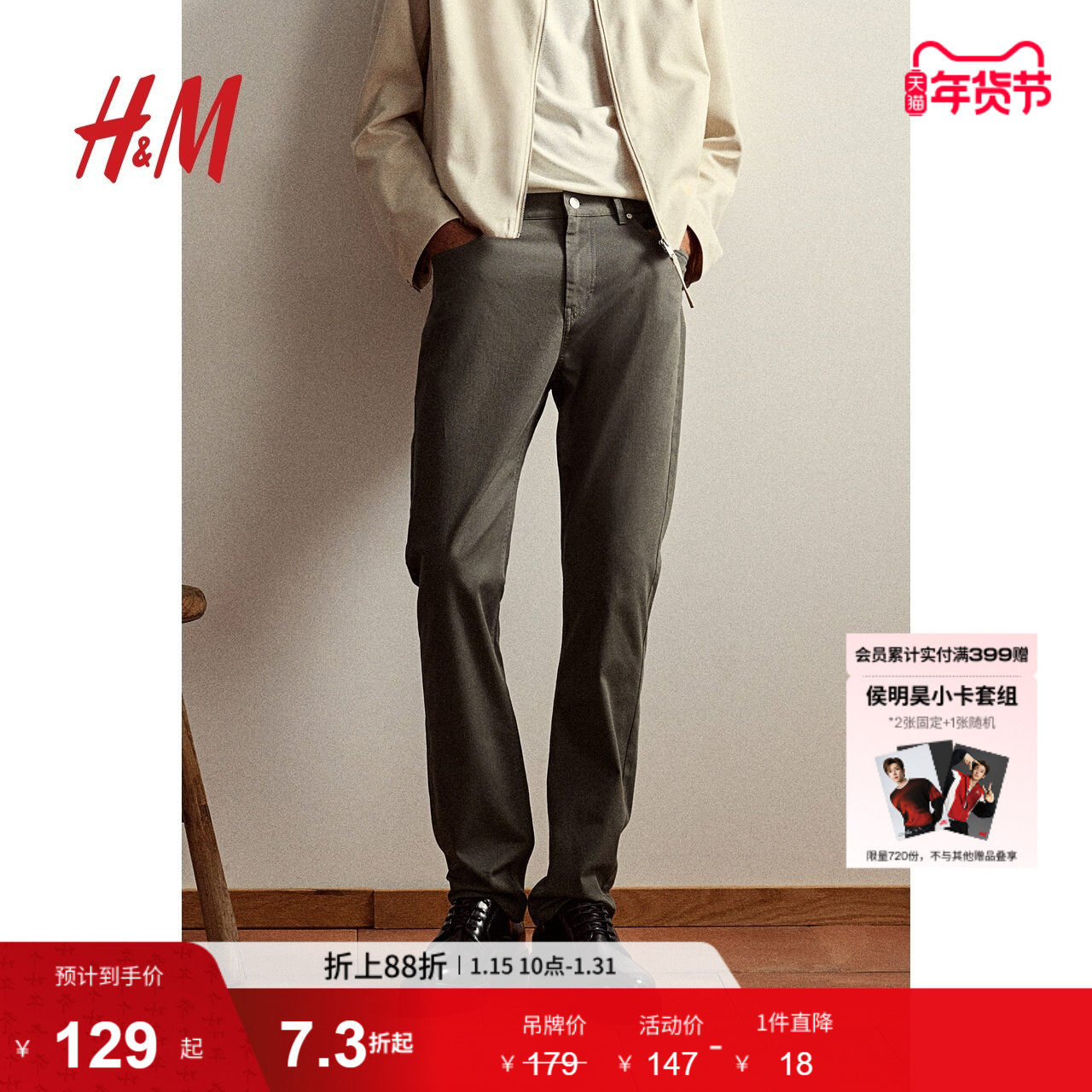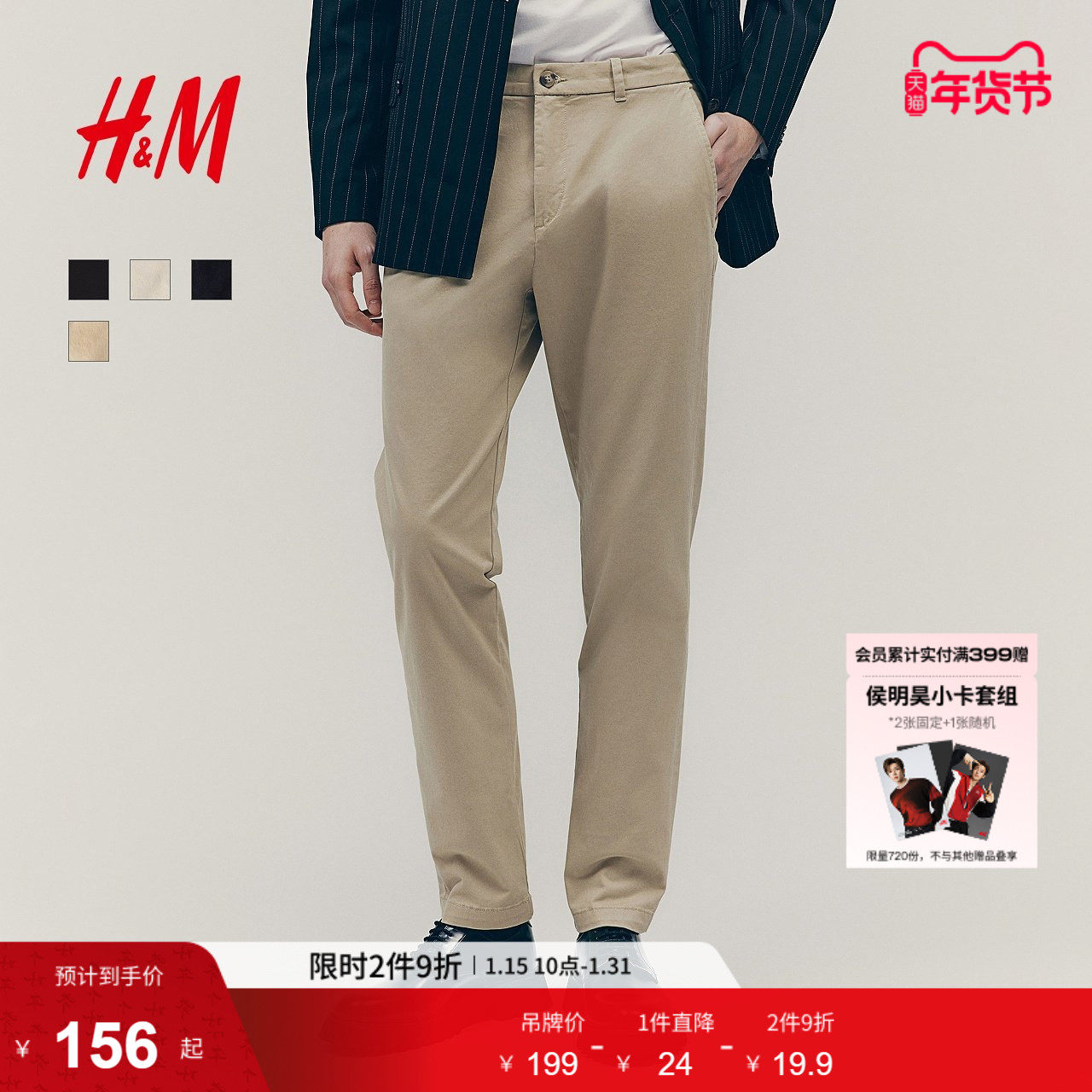 HM男装休闲裤冬季通勤合身版型斜纹棉布外出长裤1074402