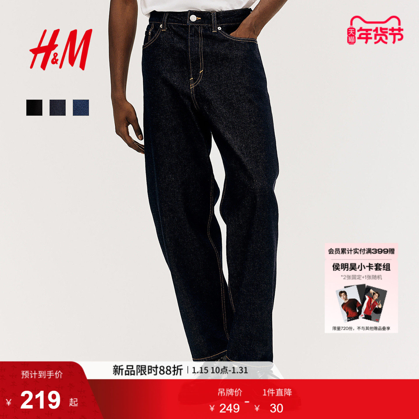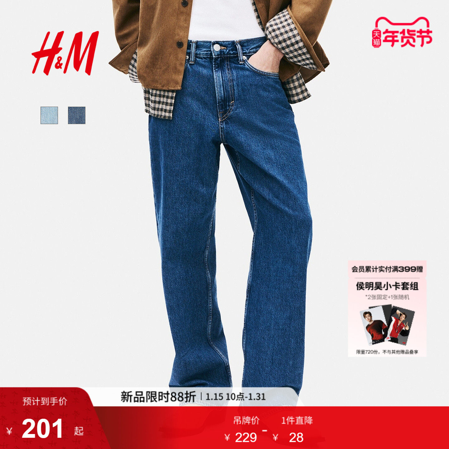 HM男装牛仔裤冬季宽松潮流棉质中腰直筒外出阔腿裤长裤1096385