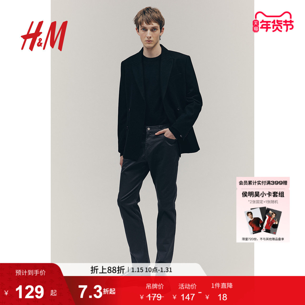 HM男装牛仔裤冬季时尚休闲合身中腰锥形小脚通勤休闲长裤0931747