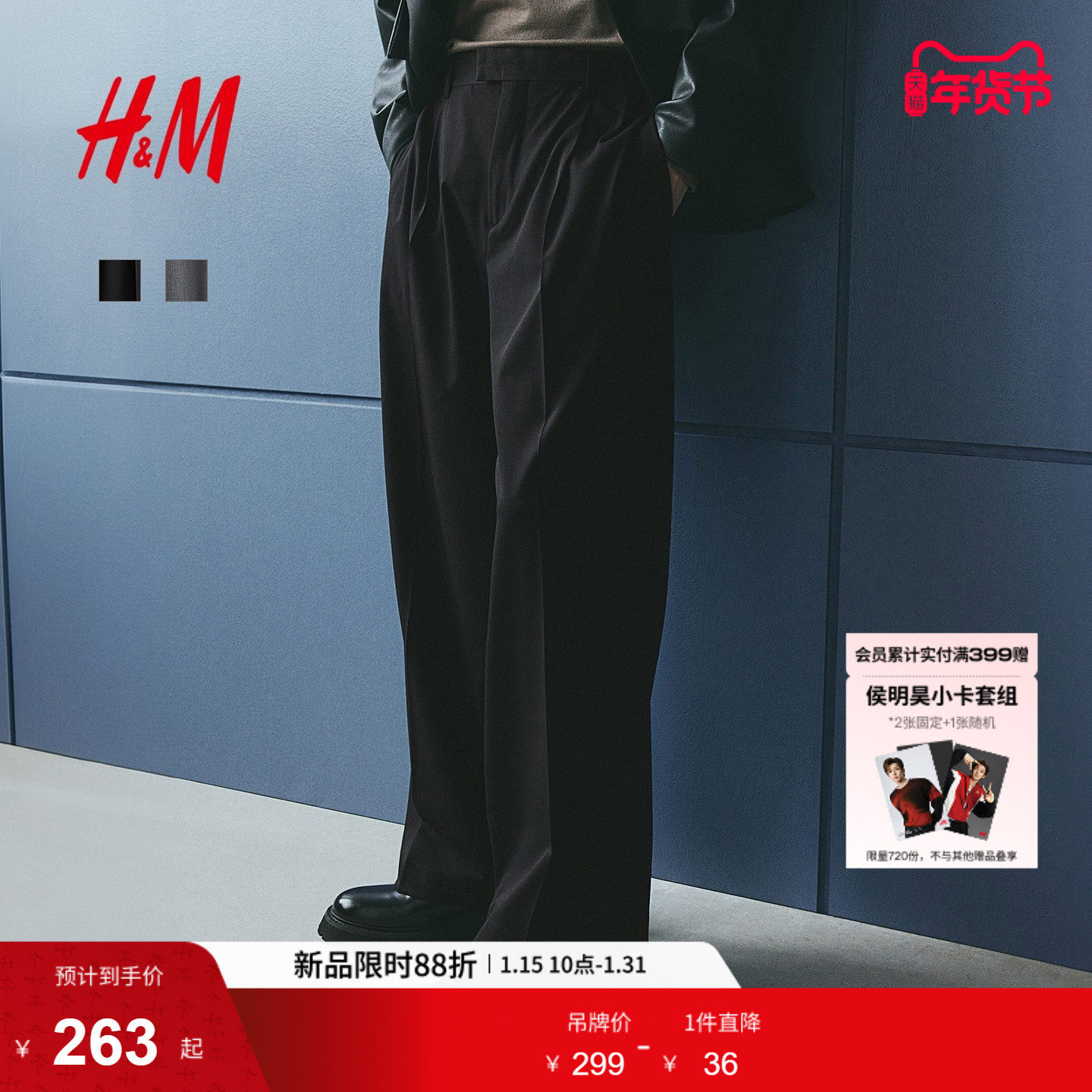 HM男装西裤2026春季新款通勤商务职业宽松版长裤正装西裤1307968