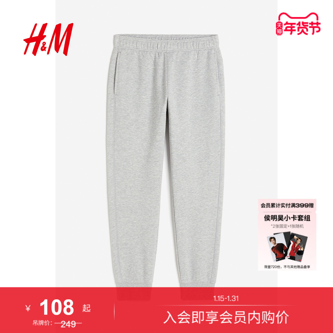 HM男装运动长裤冬季舒适跑步修身锥形抽绳慢跑裤1199781