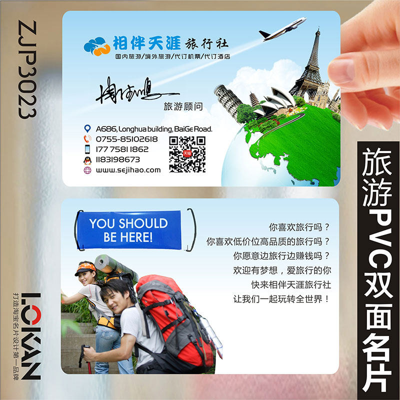 旅游公司绿色环保导游旅行团社订票务透明名片设计制作ZJP3023