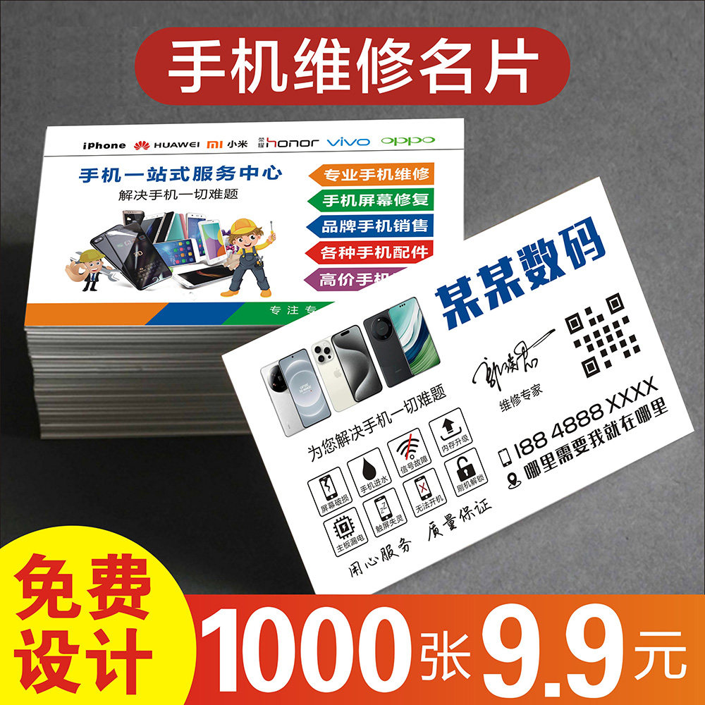 手机快修名片 铜版纸双面名片设计手机维修通讯名片制作定制设计创意高档包邮订做打印透明名片制作 25082