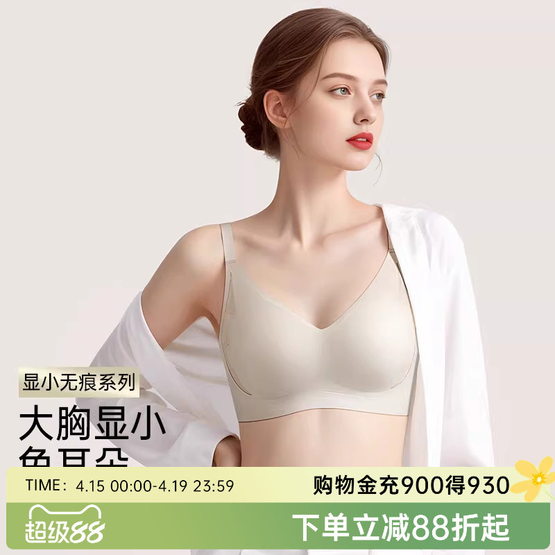 薄款无痕内衣女大胸显小显瘦无钢圈兔耳朵杯收副乳防下垂大码文胸