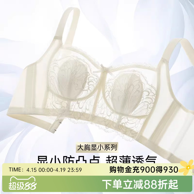 法式蕾丝薄款水晶杯大胸显小内衣女显瘦无钢圈收副乳兔耳朵杯文胸