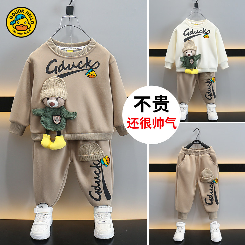 男童加厚卫衣小熊套装男女宝韩版卡通上衣宝宝宽松休闲运动两件套