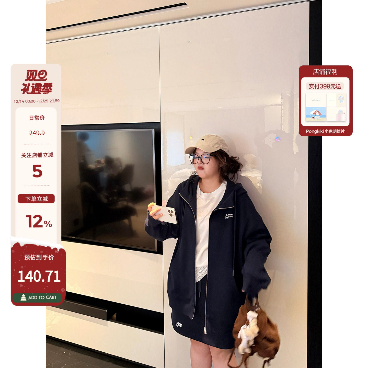 老章和小胖PONGKIKI舒服星人小熊重磅套装女大码卫衣半身裙两件套