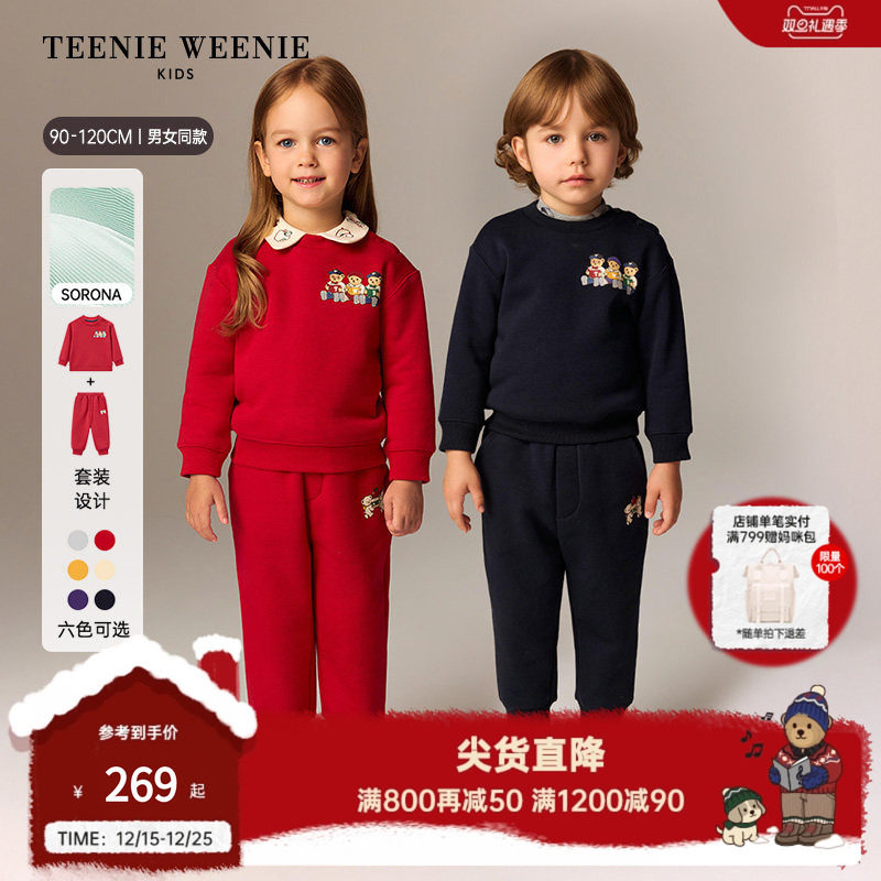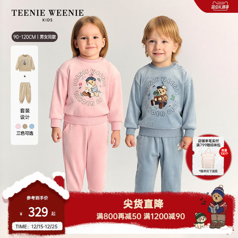 TeenieWeenie Kids小熊童装25年新款秋冬男女宝双面绒卫衣裤套装