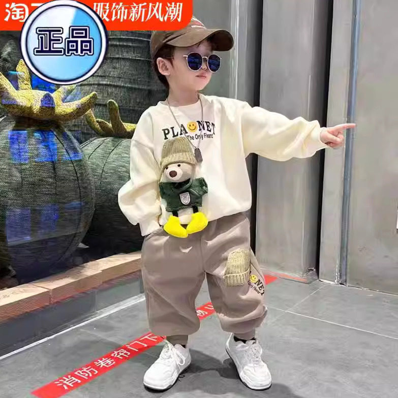 巴拉妮琪童装男女童小熊卫衣套装2025春秋新款儿童洋气长袖两件套