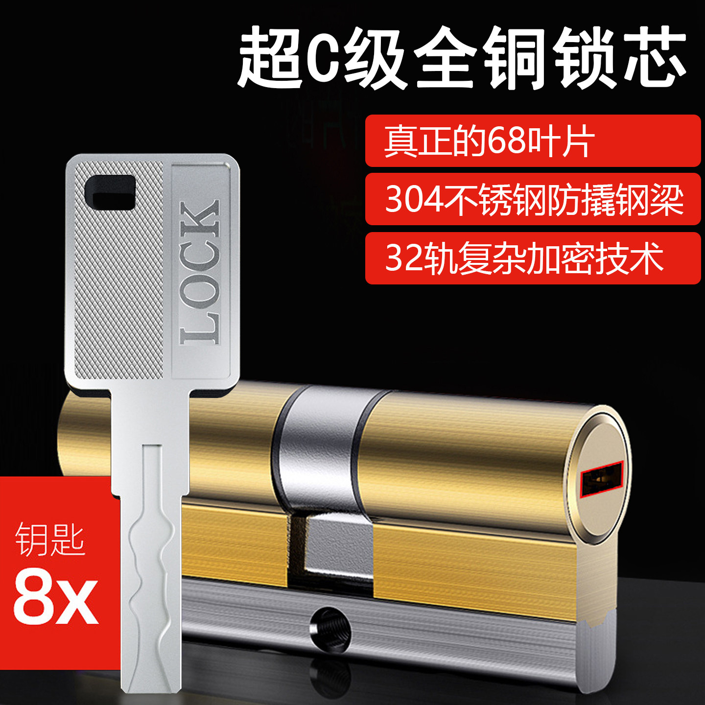 子母珠防盗门锁芯超c级门锁通用型家用换锁心入户大门全铜进户d级