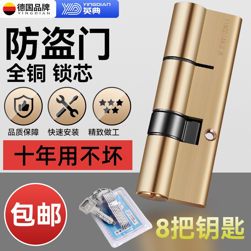 德国名洋防盗门锁芯超C级锁心家用叶片通用型入户铁大门10条钥匙
