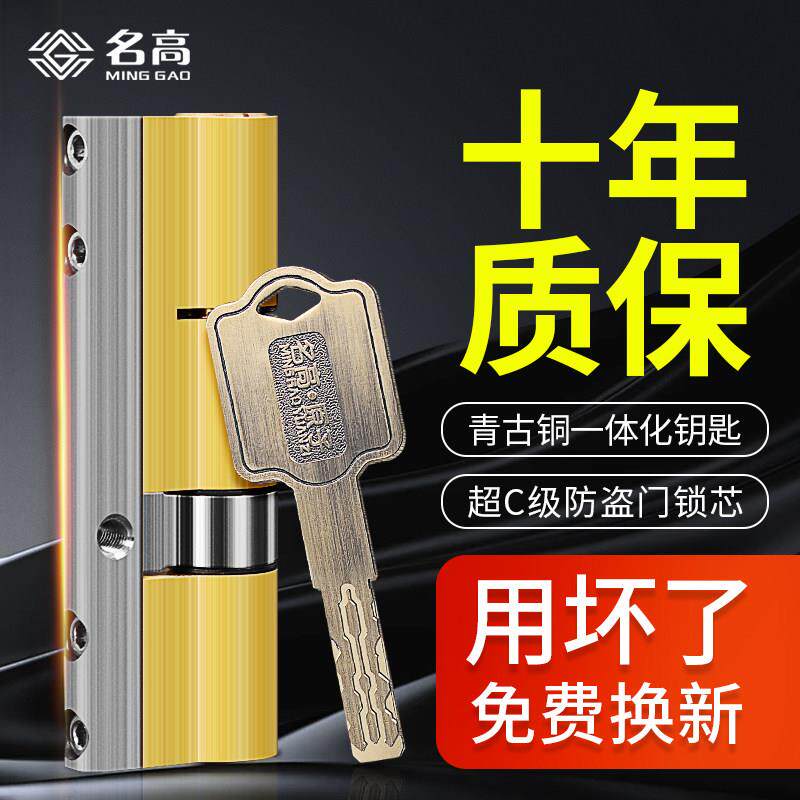 防盗门锁芯超C级国C级通用型家用入户门大铁门换锁芯全铜叶片锁芯