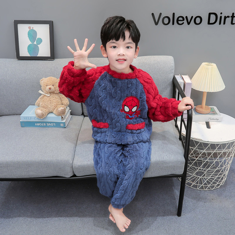 儿童珊瑚绒睡衣男孩冬季加厚男童蜘蛛侠套装宝宝冬款法兰绒家居服
