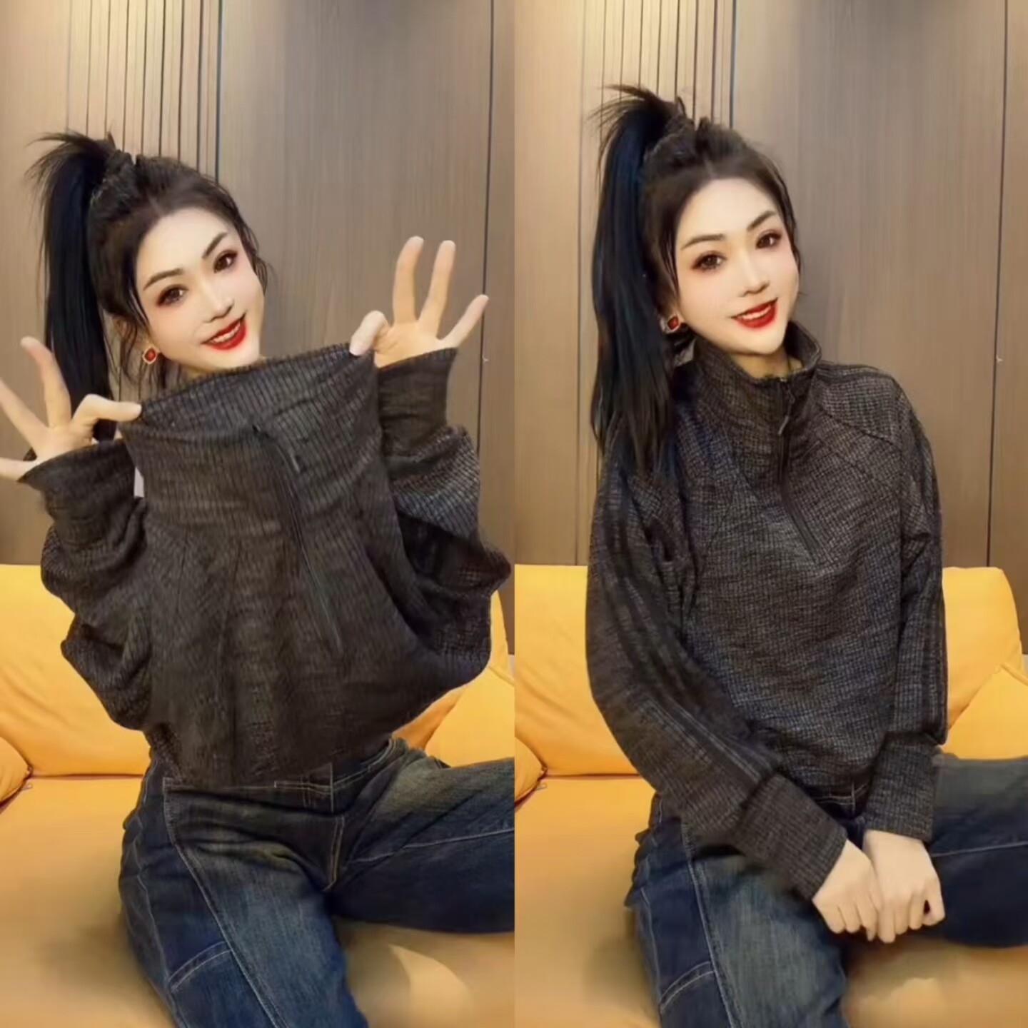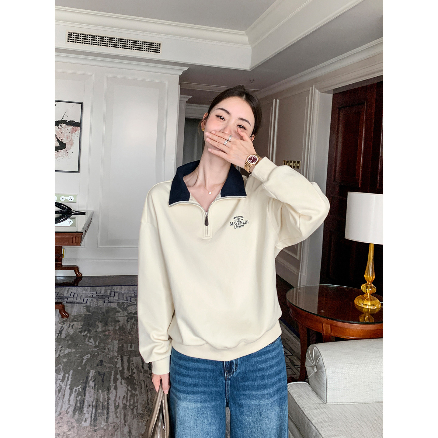 Maven Lin优雅天成 老钱风立领半拉链卫衣女宽松翻领长袖针织上衣