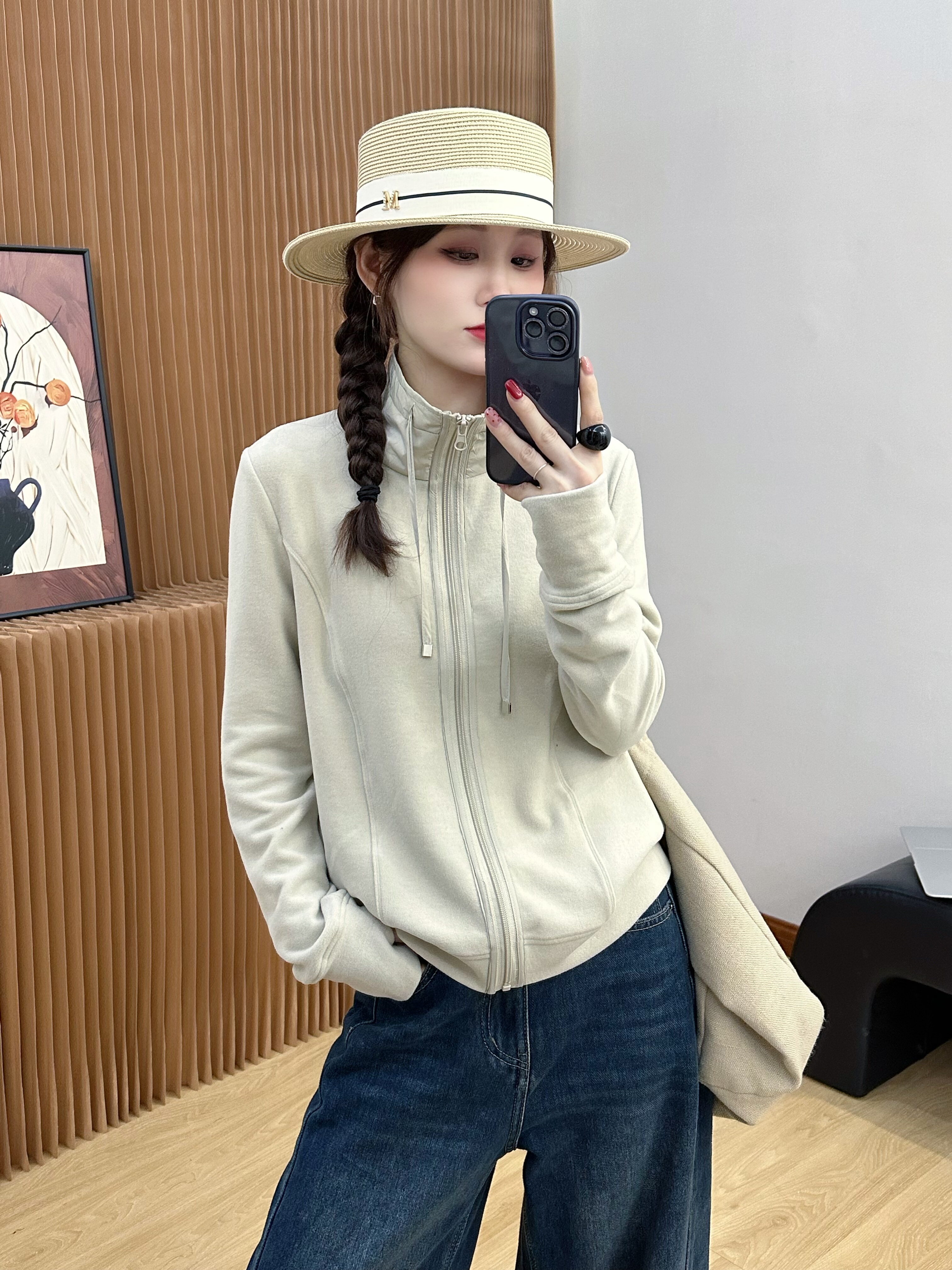 2025年秋冬新款时尚立领德绒拉链卫衣女宽松显瘦百搭休闲保暖外套