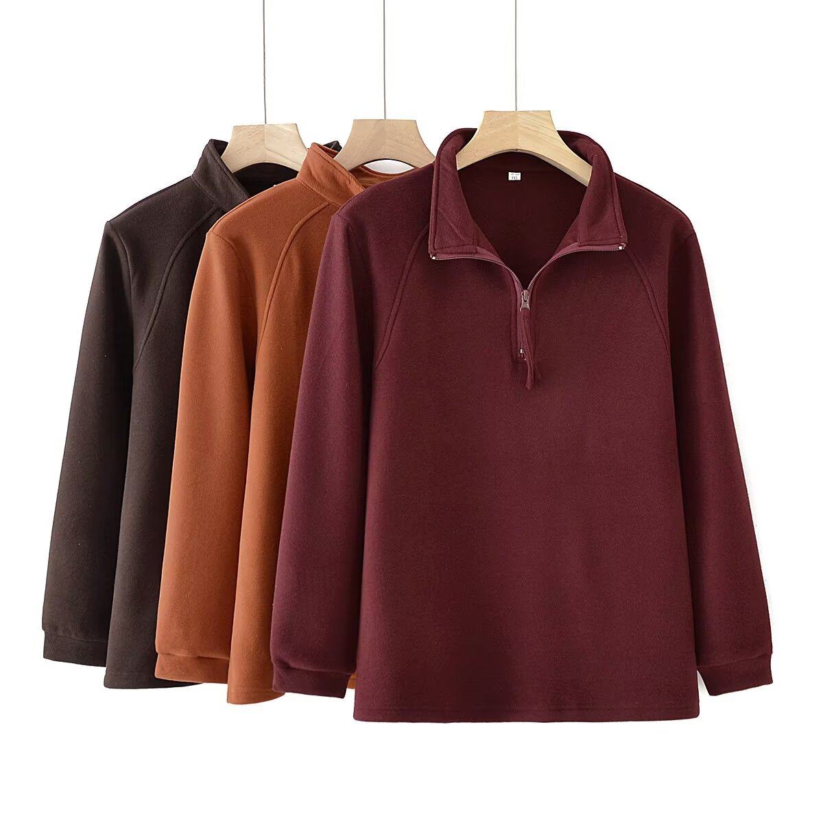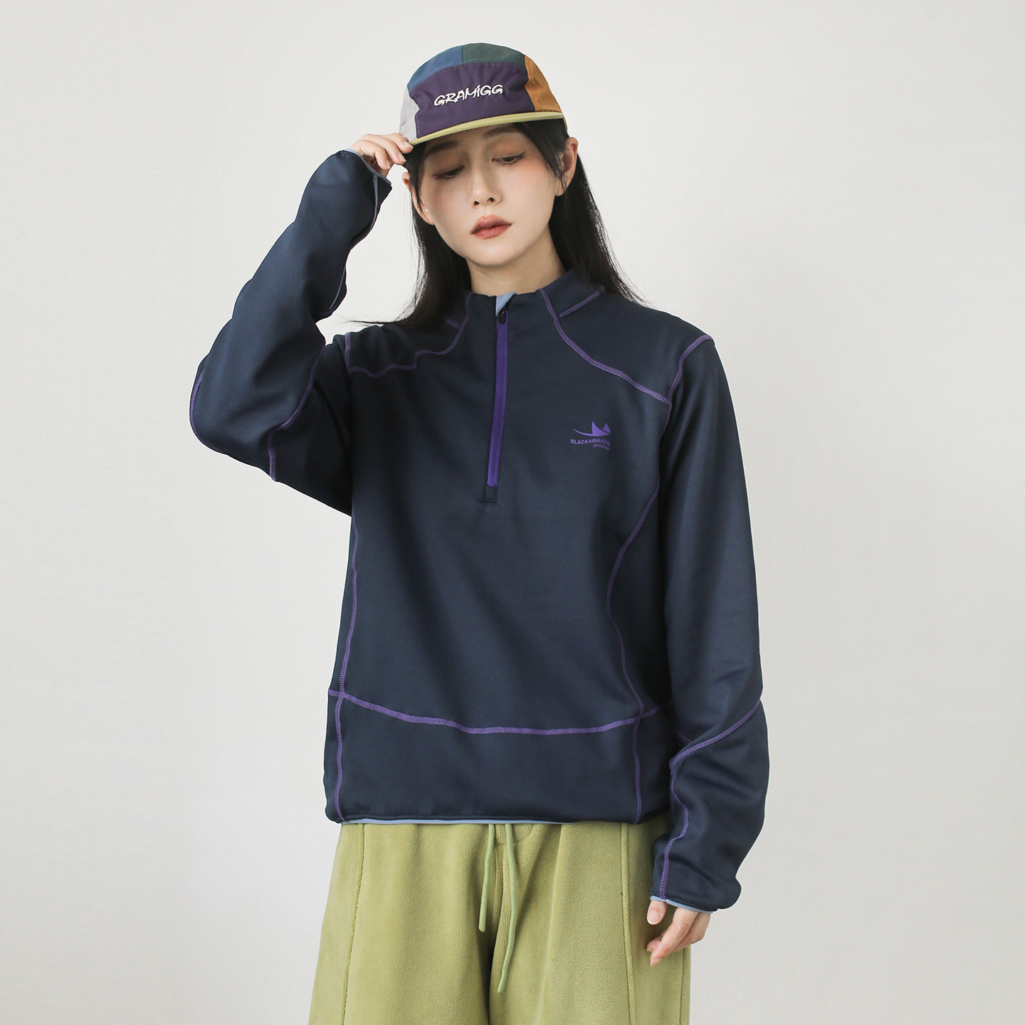 漫渡户外半拉链卫衣女宽松立领长袖上衣运动风保暖百搭加绒打底衫