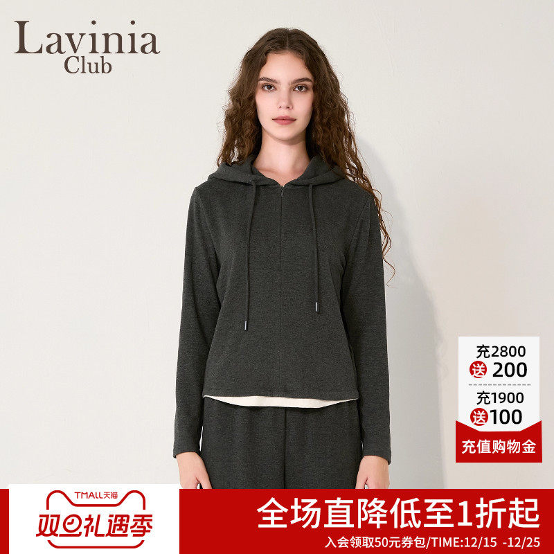 Lavinia2025秋冬新款连帽抽绳半拉链卫衣女宽松休闲百搭通勤上衣