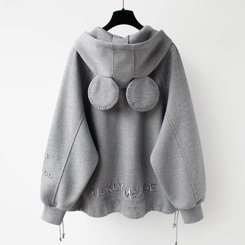 大码冬装新款简约运动风连帽拉链卫衣女宽松外套大码加绒加厚外套