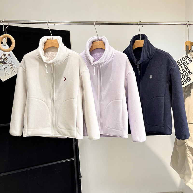 superniniyy 盐系加厚双面摇粒绒灰色宽松立领长袖拉链卫衣外套女