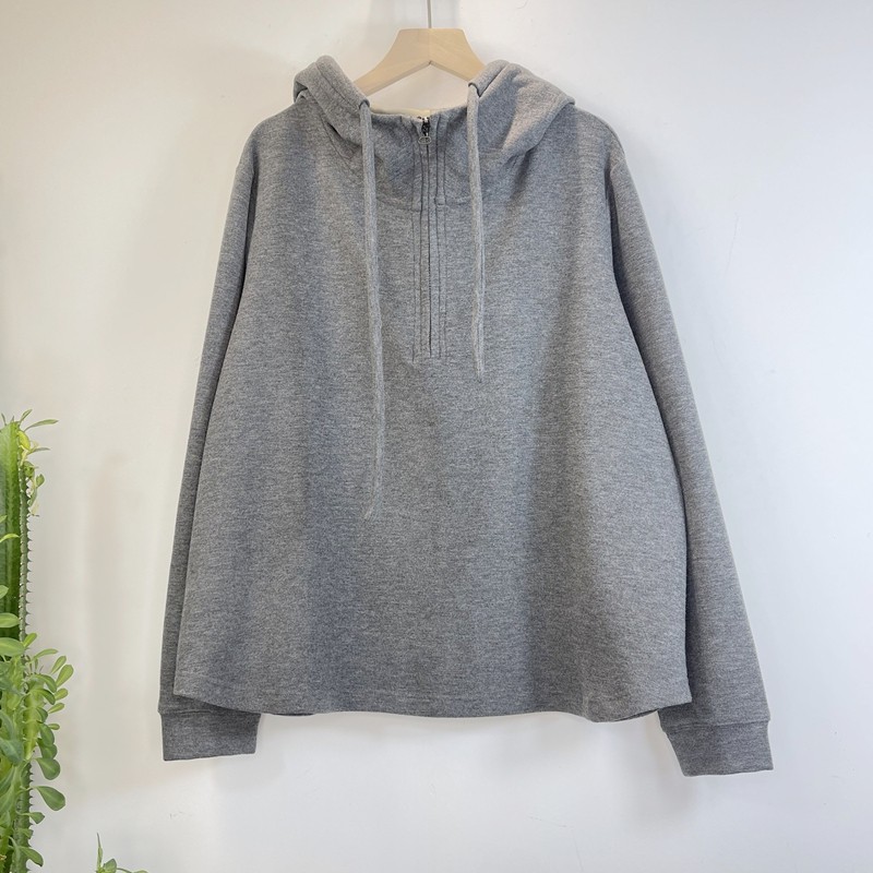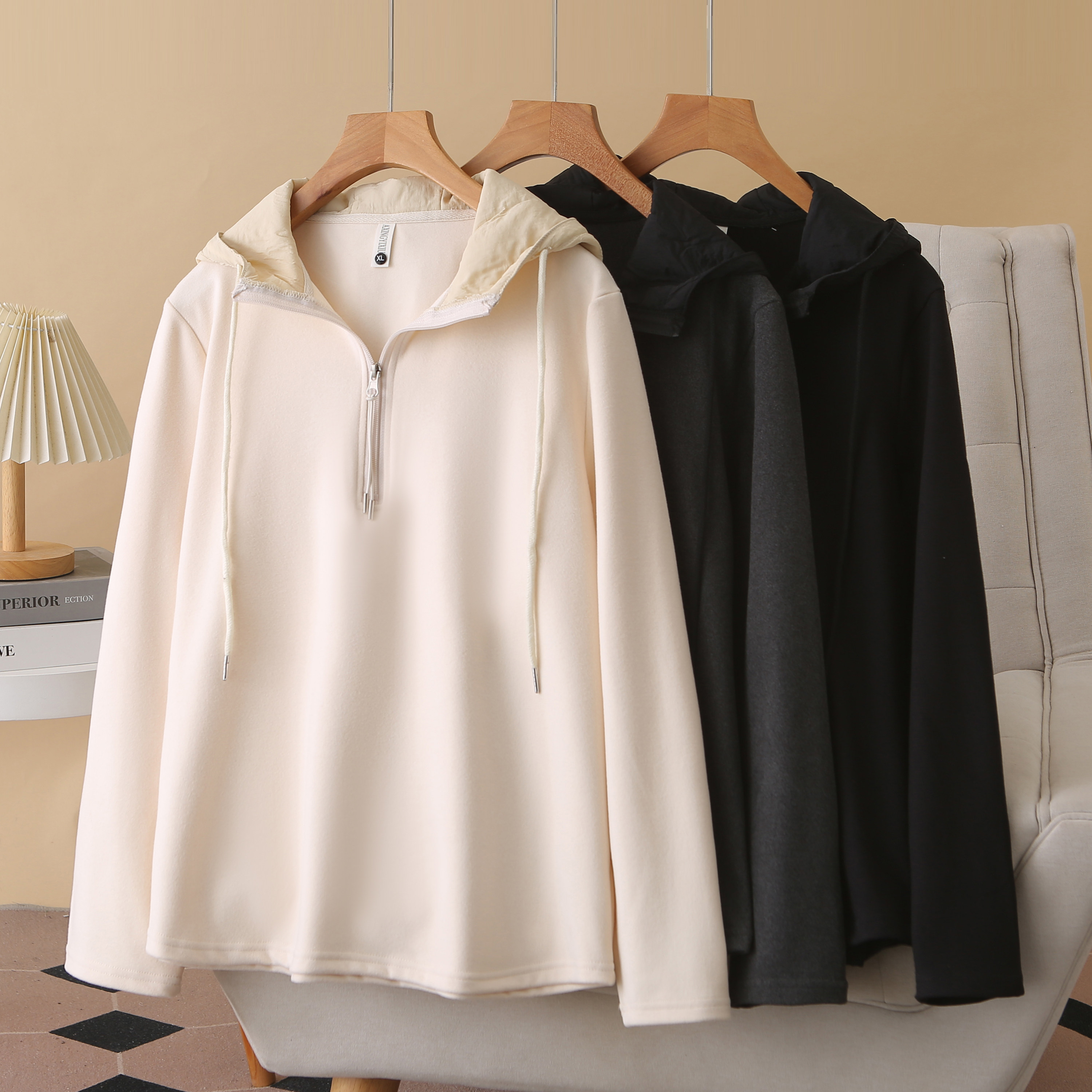 大码冬装连帽半拉链卫衣女宽松显瘦遮肉长袖上衣极简风加厚打底衫