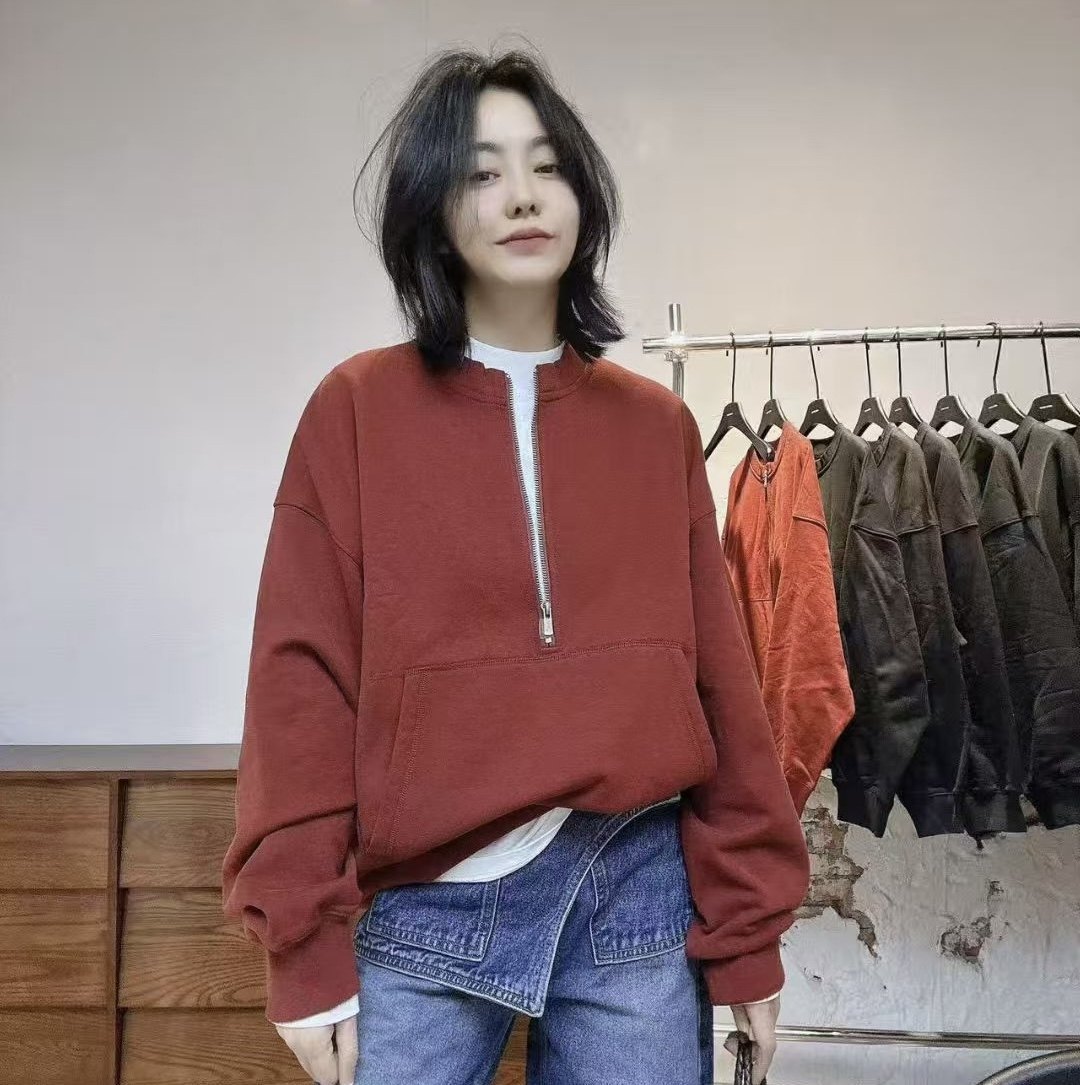 奥特莱斯~清仓特价美式复古半拉链卫衣女宽松松弛感慵懒休闲外套