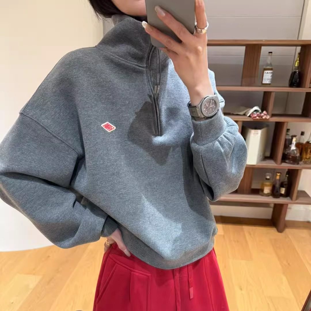 欧洲站2025冬季韩式休闲风灰色立领半拉链卫衣女宽松百搭通勤上衣