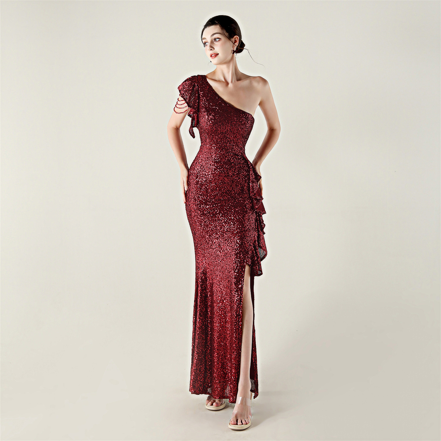 晚礼服女高级感主持人夜总会佳丽高端大气单肩斜肩性感长款连衣裙
