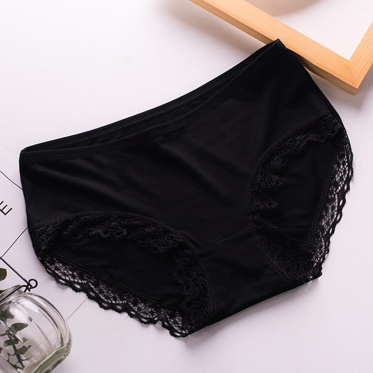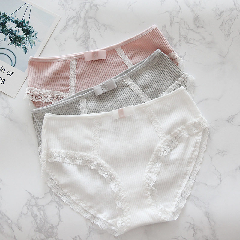 内裤 女士全棉中腰舒适棉三角裤棉裆日系莫代尔蕾丝抗菌青年无痕