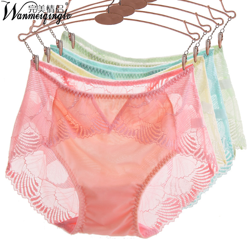 4条装完美情侣蕾丝性感火辣诱惑透明内裤 女士纯棉提臀中腰无痕