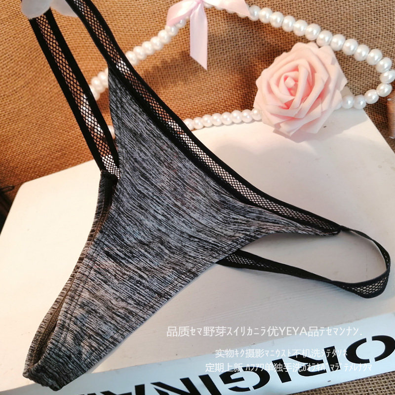 日系性感情绪内裤 女士丁字裤柔软冰丝镂空纯欲野性女生纯色T裤