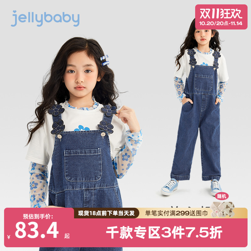杰里贝比牛仔裤女童春秋新款宝宝秋季长裤儿童秋装小童时髦背带裤