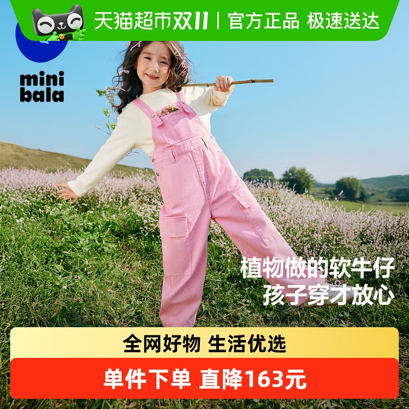 迪迪鹿女童背带裤全棉2025秋冬季款儿童背带牛仔长裤连体裤洋气