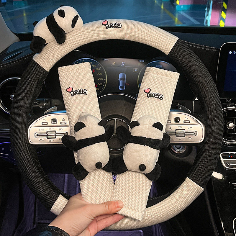 新款卡通方向盘套可爱四季通用透气亚麻卡通女生车载装饰汽车把套
