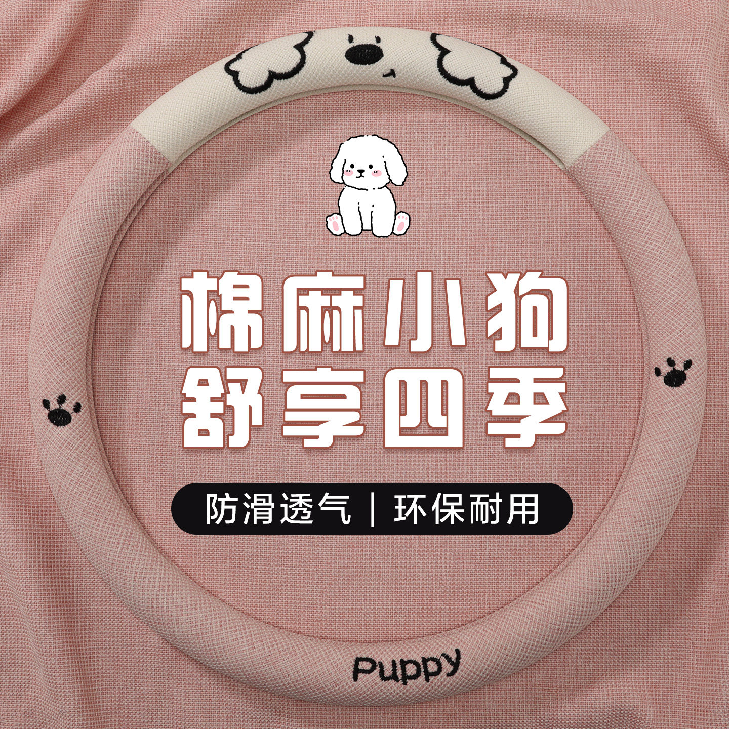 方向盘套四季通用透气淳麻防滑夏季卡通可爱女款D型汽车把套装饰