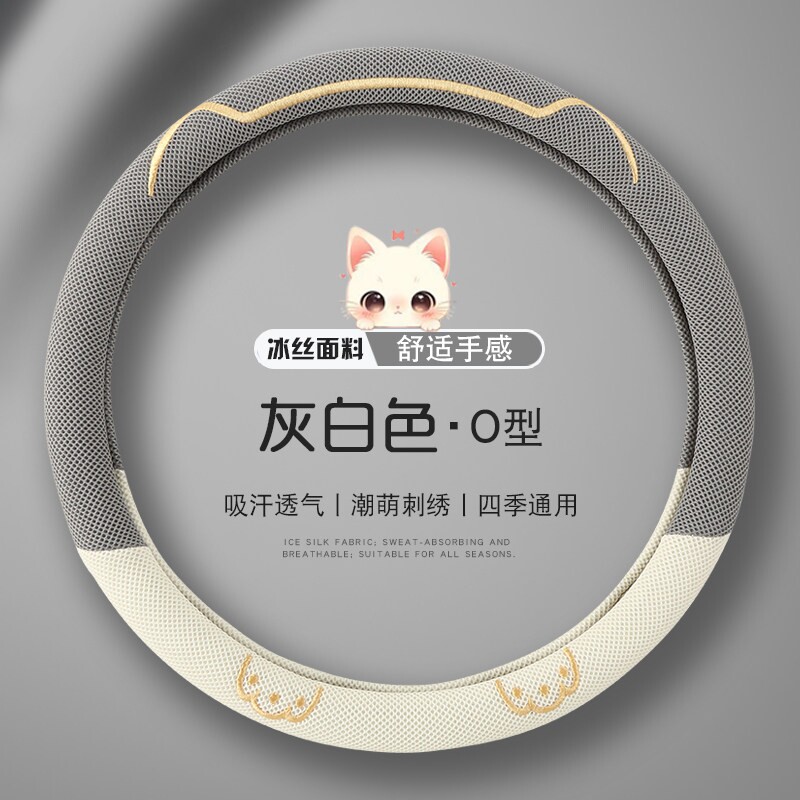 汽车方向盘套男高档冰丝可爱防滑透气吸汗女卡通D型把套四季通用